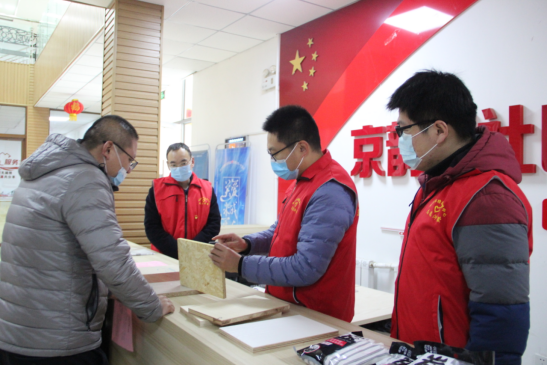 活动现场,党员志愿者们给社区居民群众科普了室内甲醛的危害,给消费者的生活和健康带来的严重影响,通过发放宣传纸为居民讲解去除室内甲醛方法建议。通过实物展示,现场向居民讲解在装修过程中,如何挑选合适板材。