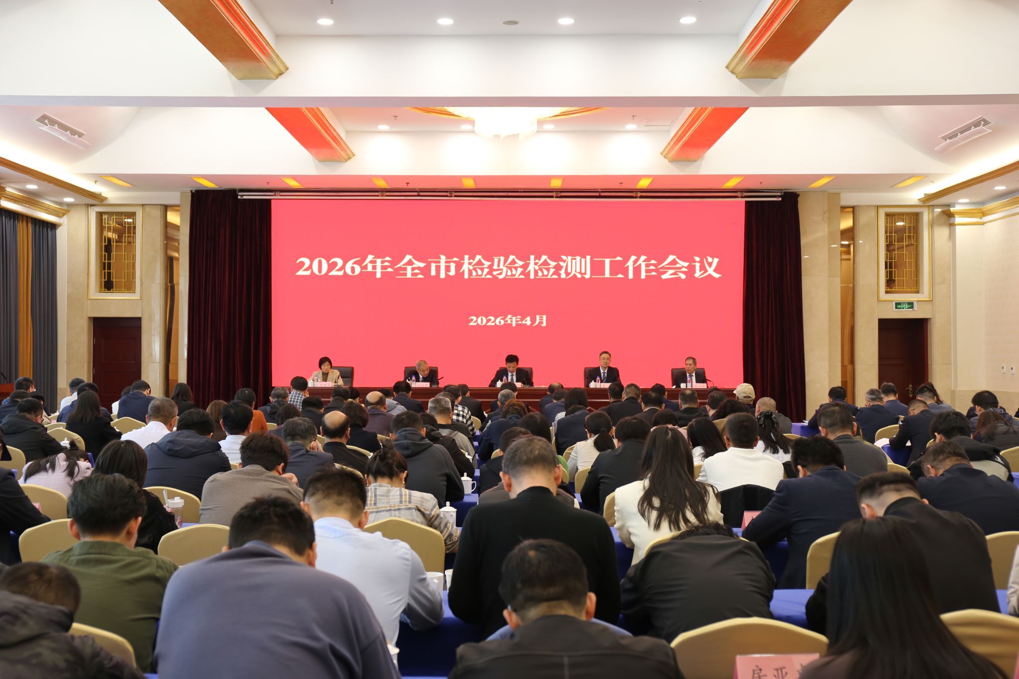 4月15日,2026年全市检验检测工作会议召开。会议坚持以习近平新时代中国特色社会主义思想为指导,落实中央、省委、市委经济工作会议和“两会”精神要求,总结回顾2025年全市检验检测系统工作成果,分析研判全市检验检测工作形势,安排部署2026年重点工作,启动检验检测“产业服务创新年”活动,动员全市检验检测系统干部职工统一思想、凝聚力量,奋力开创检验检测事业高质量发展新局面。市检验检测中心党组成员、副主任傅磊出席会议并讲话,市检验检测中心领导班子成员、副科级以上干部、授权签字人,各县检验检测中心负责人等参加会议。