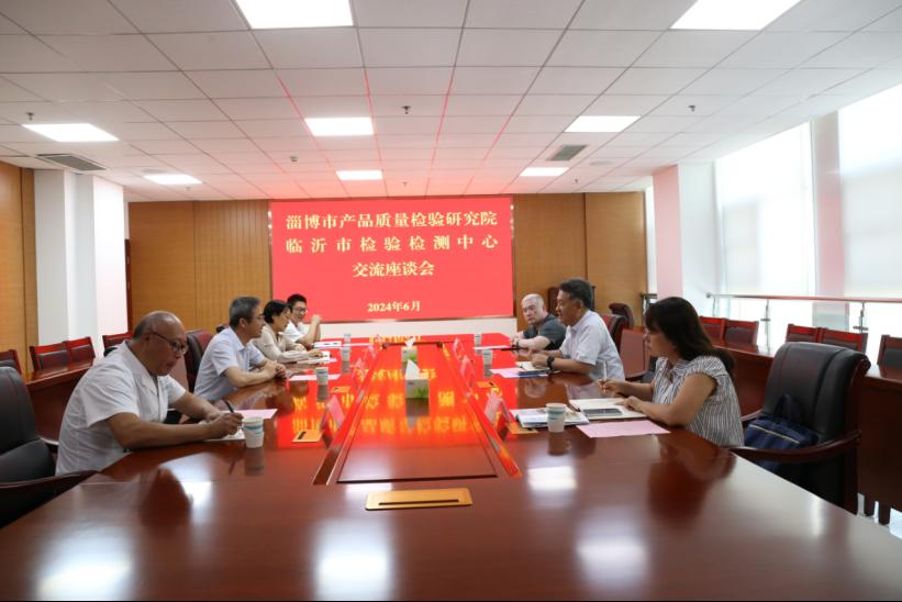 近日,淄博市产品质量检验研究院院长张胜一行来临沂市检验检测中心进行座谈交流,市检验检测中心党组成员、副主任黄波及相关科室人员参加活动。