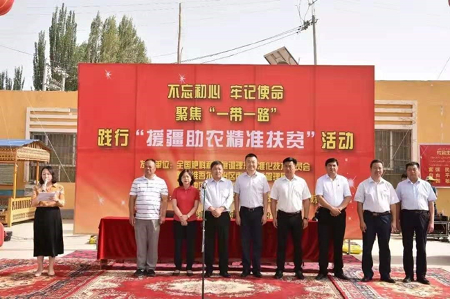 活动期间,为响应国家智力援疆、科技兴农和精准扶贫政策,探索开展智扶、物扶、财扶等标准化扶贫活动,黄波、窦兴霞等同志随同全国肥料和土壤调理剂标准化技术委员会全体委员及相关媒体一起参加了“不忘初心、牢记使命,聚集‘一带一路’,践行‘援疆助农精准扶贫’”活动,来到了和田地区洛普县山普鲁镇欧吐拉比孜里村,为当地村民开展知识普及、技术培训、肥料捐赠、捐资捐物及肥料标准化示范等农化扶贫活动,致力于改变当地化肥使用极少甚至空白、农作物长势不好的现状,增加农民收入,受到当地村民的热烈欢迎。