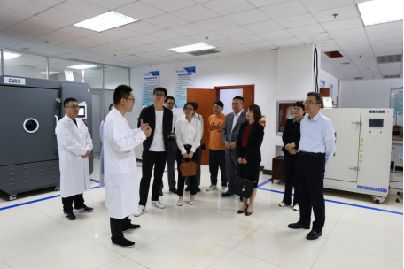 谢志新一行实地考察检验检测业务工作情况,到中心所属的山东省人造板及制品质量检验中心、国家化肥质检中心、食品大型仪器室及微生物实验室进行调研,详细了解中心实验条件、人才队伍建设、科研创新等相关工作。