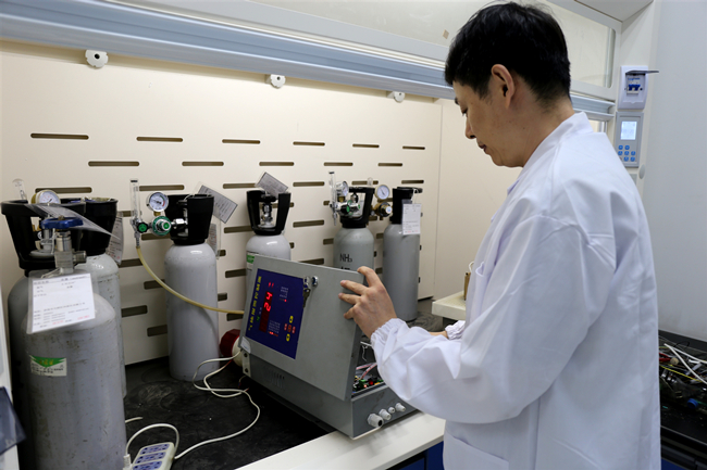 (中心技术人员对环境监测站气象色谱仪进行检定)
