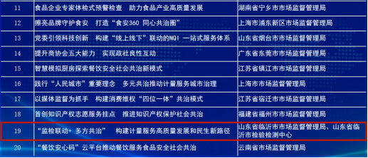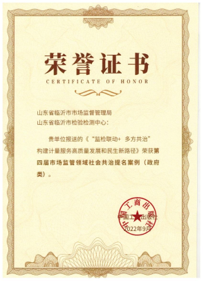 近日,由国家市场监督管理总局直属单位中国工商出版社主办的第四届市场监管领域社会共治大会在北京举行。本次大会共发布全国范围内市场监管领域社会共治优秀案例40例,其中政府类优秀案例10例、提名案例20例,非政府类优秀案例10例。临沂市市场监督管理局、临沂市检验检测中心联合报送的《“监检联动+多方共治” 构建计量服务高质量发展和民生新路径》荣获政府类优秀案例提名!