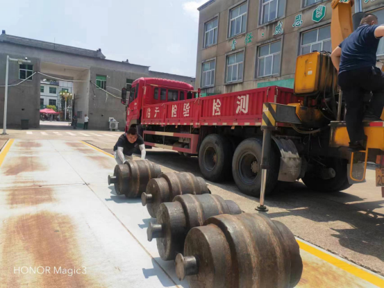 在持续高温“炙烤”下,电子汽车衡秤体钢板温度接近60℃,蒸腾的热气清晰可见,就连标准砝码都热得烫手。高温下的作业环境又闷又热,但检定人员不畏高温,认真仔细地装卸着一个个重达一吨的砝码,一干就是几个小时。临沂市检验检测中心计量检定所技术人员赵增禄说:“每台电子汽车衡都需要对传感器进行调试误差,再用标准砝码进行检定,需要反复测量,重复调试,直至符合检定规程要求。一次检定下来几乎全身湿透,但检定工作容不得半点马虎,每一处细节都要检查到位,每一台仪器都应“毫厘”不差。”