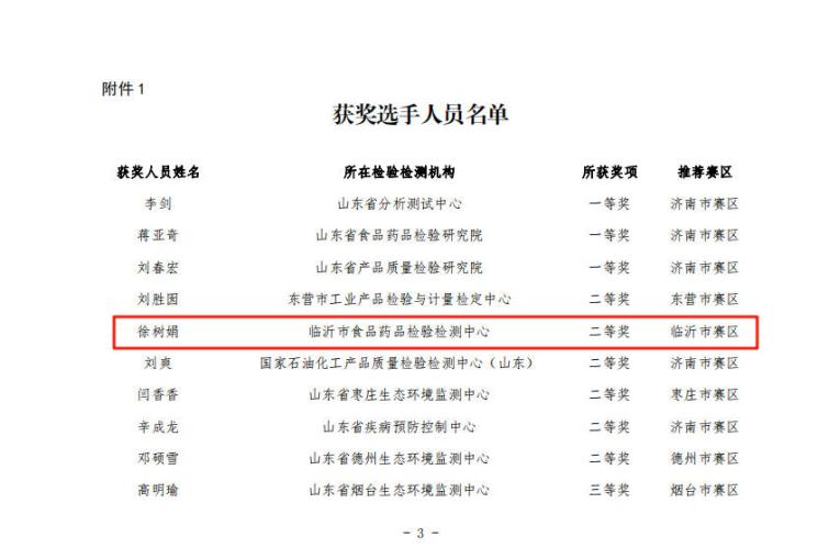 9月11日-12日,山东省“技能兴鲁”职业技能大赛——山东省第二届化学分析检验人员行业职业技能竞赛决赛在济南成功举办。市检验检测中心选派的徐树娟博士凭借扎实的理论基础、卓越的仪器设备操作能力和出色的心理素质,以总分全省第五名的成绩在众多选手中脱颖而出,喜获二等奖。
