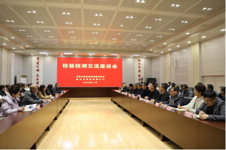 11月30日,东营市食品药品检验研究院副院长印成霞一行来临沂市检验检测中心食药中心考察交流。市检验检测中心党组成员、副主任黄波及食药中心相关负责同志、技术骨干参加交流活动。