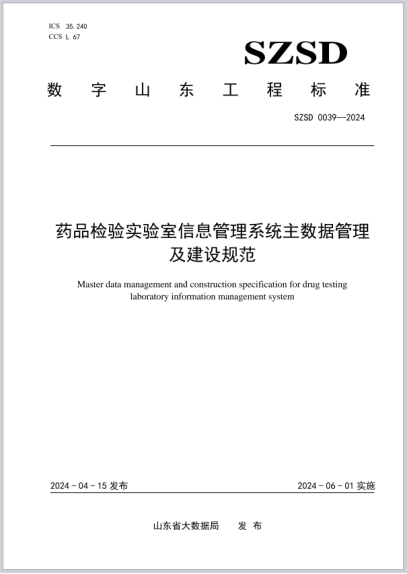 为规范全省实验室信息管理系统统一建设,顺利实现全省数据共享,基于全省实验室信息管理系统建设和应用实践,总结归纳成功经验,瞄准建设与应用痛点堵点,由山东省药品监督管理局提出,山东省大数据局归口,山东省食品药品检验研究院联合15地市食品药品检验机构负责标准起草工作,筛选出业务、人员、仪器设备、产品、检验方法、质量监控、接口、系统安全等9类主数据,赋以定义、编码规则、属性信息和管理流程,同时规范了实验室信息管理系统的总体架构、通用要求、功能要求,以及数据、运维、安全等要求,为全省食药检验数据一体化平台建设奠定了基础。