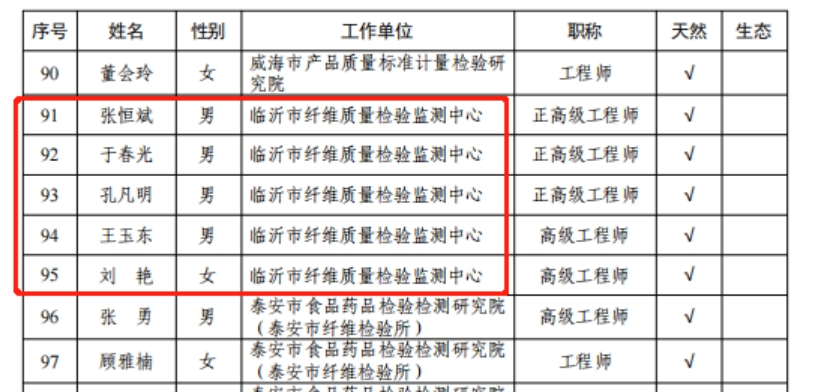 5月28日,中国纤维质量监测中心下发文件,公布全国“优质纤维”产品证明商标体系检测站和评审专家名单,临沂市检验检测中心纤维质量检验监测中心被确定为“优质纤维产品检测站”,同时张恒斌等5名同志被确定为“优质纤维产品评审专家”。
