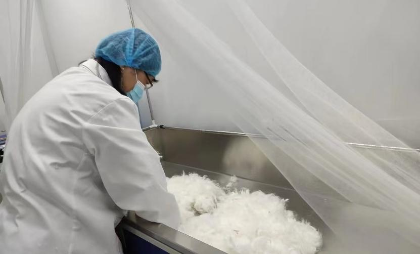 监测过程中,纤监中心技术人员深入长毛兔养殖户、兔毛加工企业,严格按照监测程序,对兔毛样品进行采集、封存和送检,利用先进的检测设备和技术手段,按照相关标准对样品的物理性能、化学性能、安全性能等方面指标进行了全面监测。