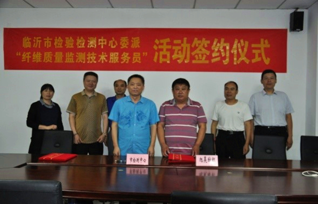 会后,孙学亭同志代表市检验检测中心与沂南旭昊纺织有限公司签订了纤维质量监测技术服务协议,正式委派刘渊、张维霞两名同志定向为该企业提供纤维质量监测技术服务。孙学亭一行还参观了沂南旭昊纺织有限公司生产车间及生产工艺。