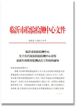 根据《中国纤维质量监测中心关于在山东省域开展蚕茧生丝质量监测工作试点的通知》(中纤质监发〔2019〕36号)文件,临沂市被中国纤维质量监测中心列为“2020年蚕茧生丝质量监测全国试点市”,为做好该项工作,市检验检测中心科学谋划、创新模式,拉开全国蚕茧生丝质量监测试点工作序幕。