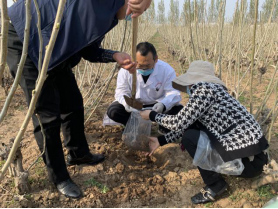 座谈结束后,黄波带领蚕茧生丝质量监测现场监测组人员到许家湖镇植桑、养蚕基地进行现场考察,与植桑农户进行了细致交谈,详细了解桑树种植管理、使用蚕种、蚕茧收购价格等方面的情况,监测组人员对地块、桑树品种及生长情况进行了监测,并按标准抽取了土壤样品。