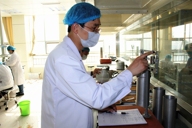 三是增加仪器设备,加快检验任务进度。为进一步提高检验速度,加赶任务完成进度,从中储粮临沂直属库、市地方储备粮管理中心以及县级粮食质检站调用容重器、谷物选筛、面筋洗涤(洗涤仪、离心机、烘干仪)、水分磨等仪器若干台,实现人尽其力、物尽其用、时尽其效,临沂国家粮食质量监测站满负荷运转。