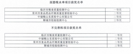 近日,国家粮食和物资储备局科学研究院、能力验证网和食品伙伴网联合公布了“2023年度粮油实验室间比对暨全国粮油检测大赛”粮食中面筋吸水率、不完善粒检验项目成绩,临沂市检验检测中心粮检中心在两个项目的竞赛中均获得“一等奖”的佳绩。